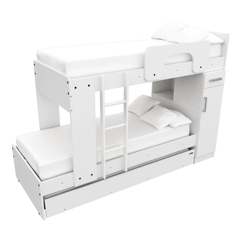 Ideal para optimizar espacios, esta configuración permite disponer de 3 camas en el espacio de una, con un diseño moderno y juvenil.